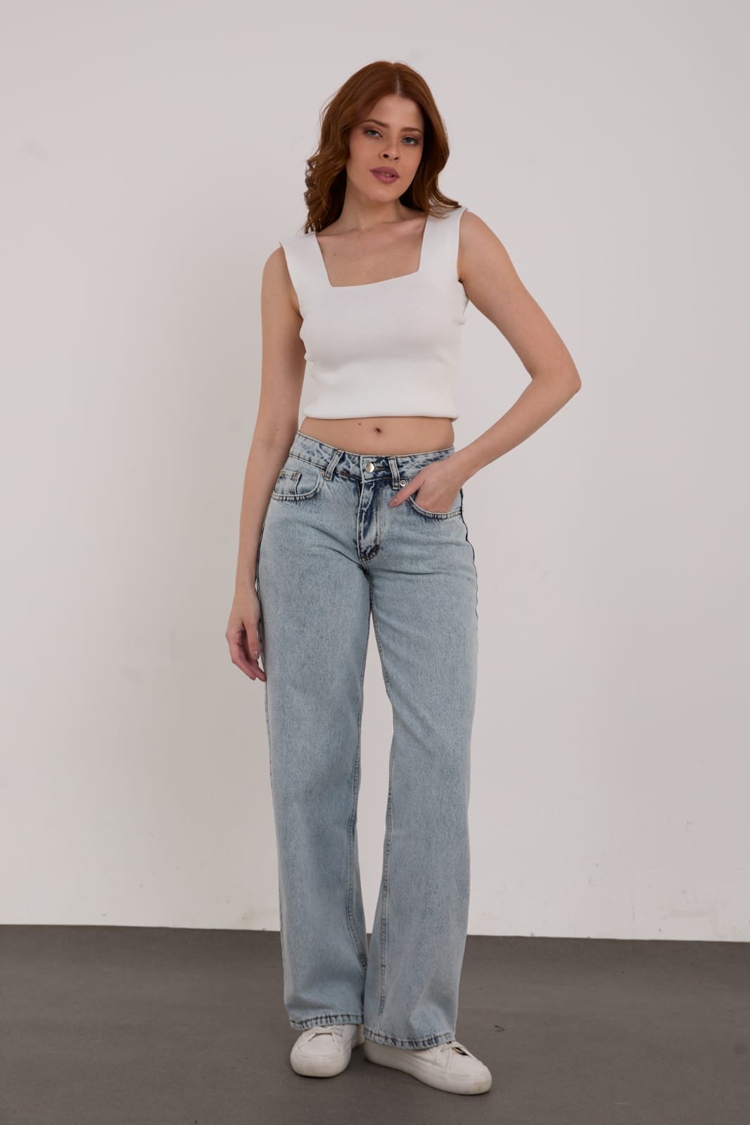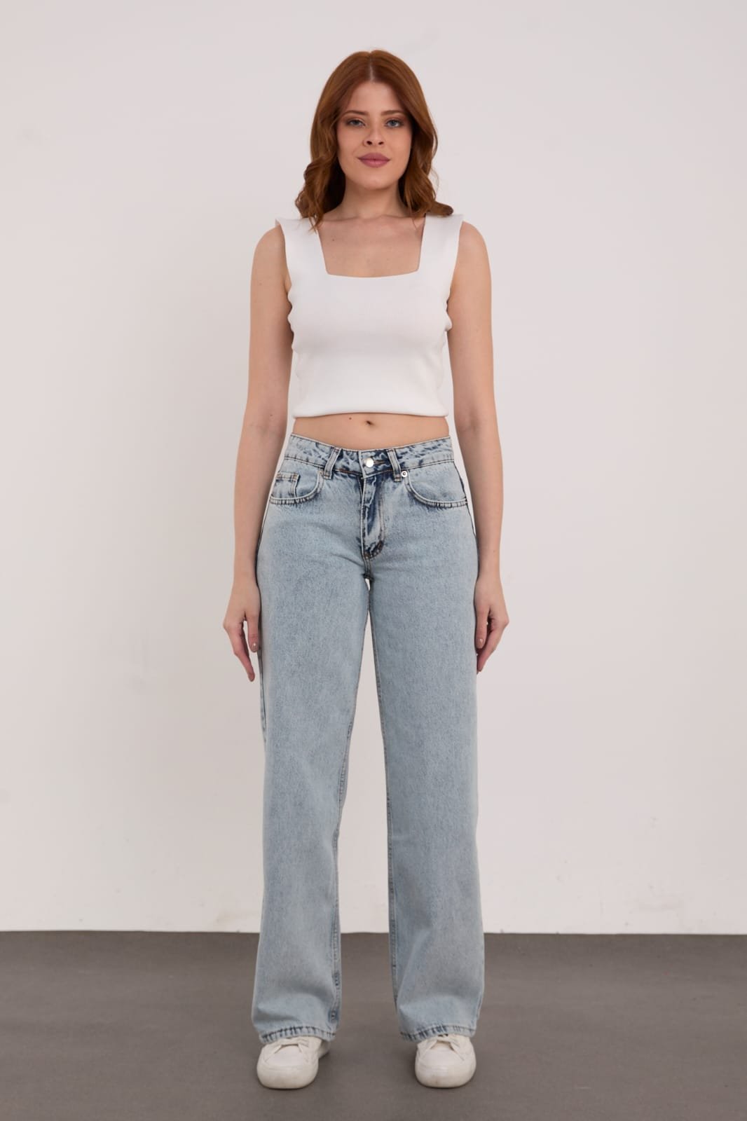 Be the first to review “High Waist Wide Leg Denim Pantolon”